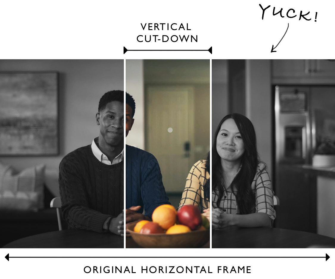 Let’s face it: social media deliverables are usually an “add-on” when a brand invests in a new broadcast TV campaign. All too often, these commercials – written by an ad agency and filmed with cinematic cameras in a traditional landscape aspect ratio – are hastily re-edited for Instagram and TikTok. Trust us, we know: we make TV commercials too!
